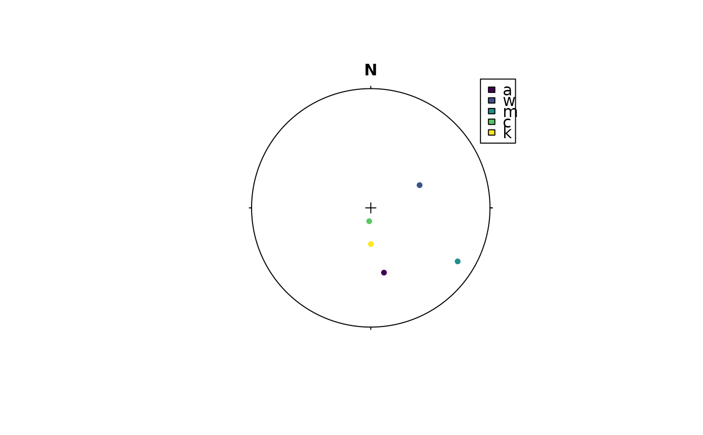 x <- rvmf(5, mu = Line(120, 50), k = 5)