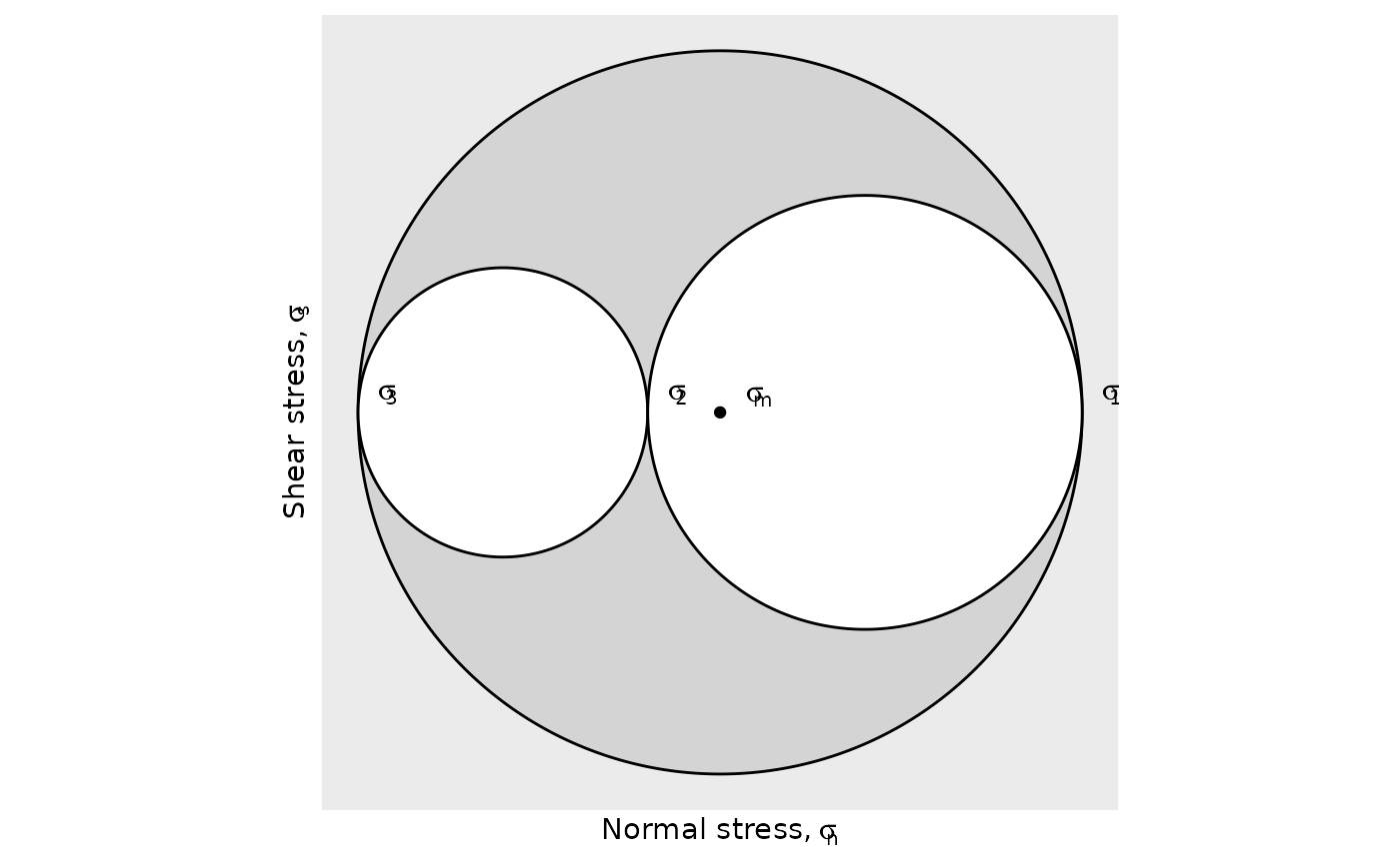 Plots the Mohr Circle diagram using ggplot functionality.