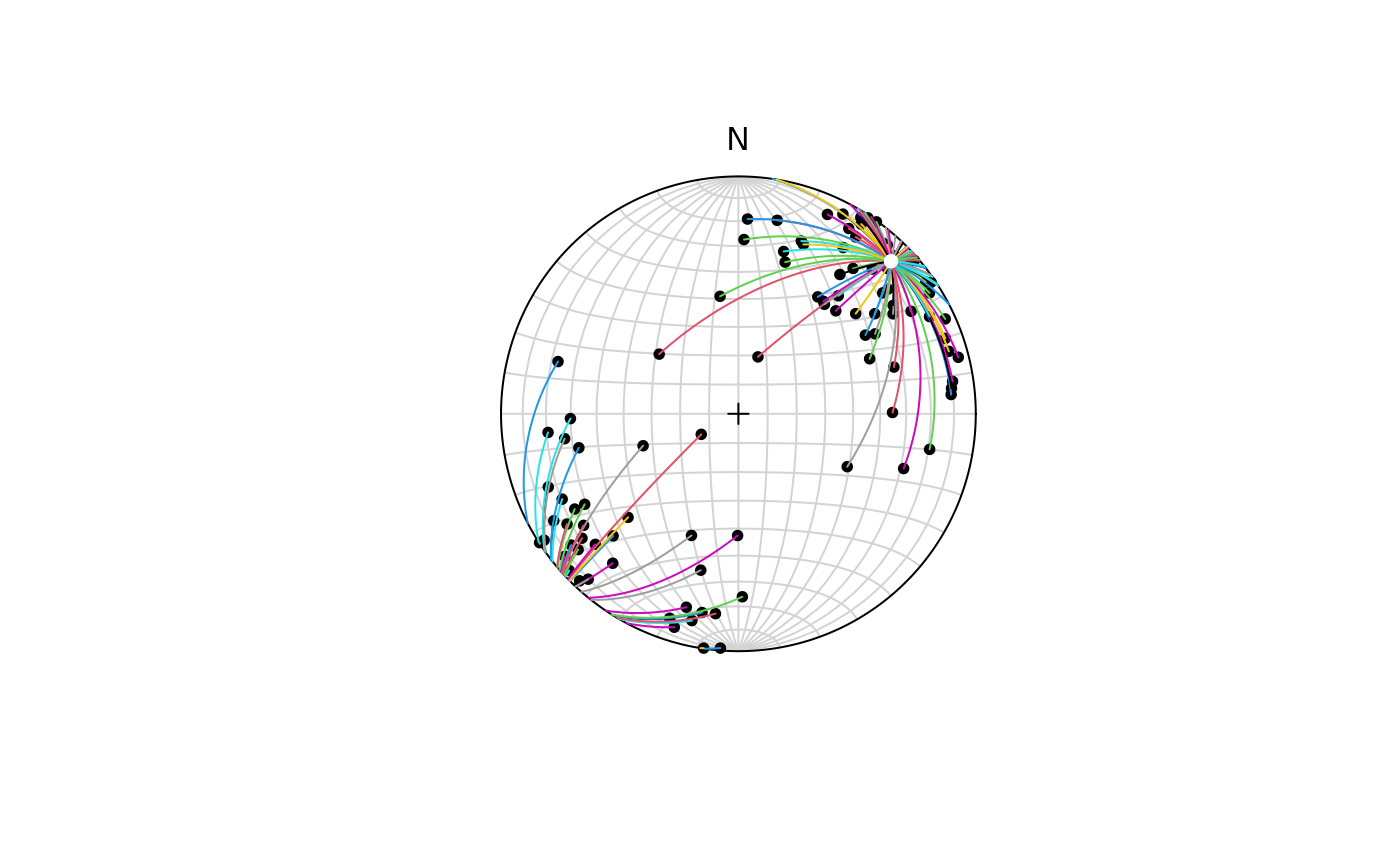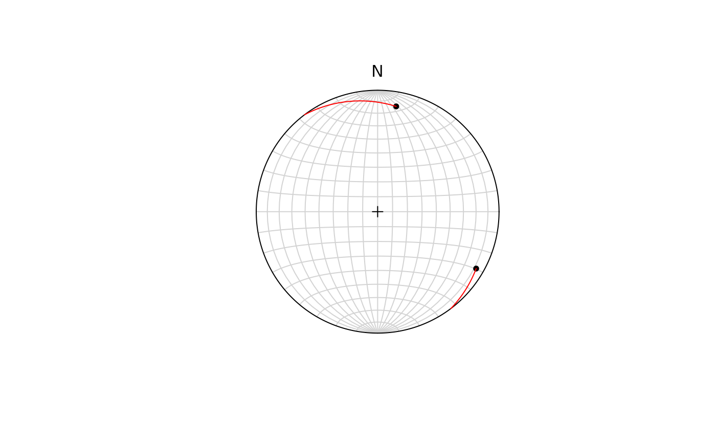 TRUEfor Lambert equal-area projection (also "Schmidt net"; the default), orFALSEfor meridional stereographic projection (also "Wulff net" or "Stereonet").- n