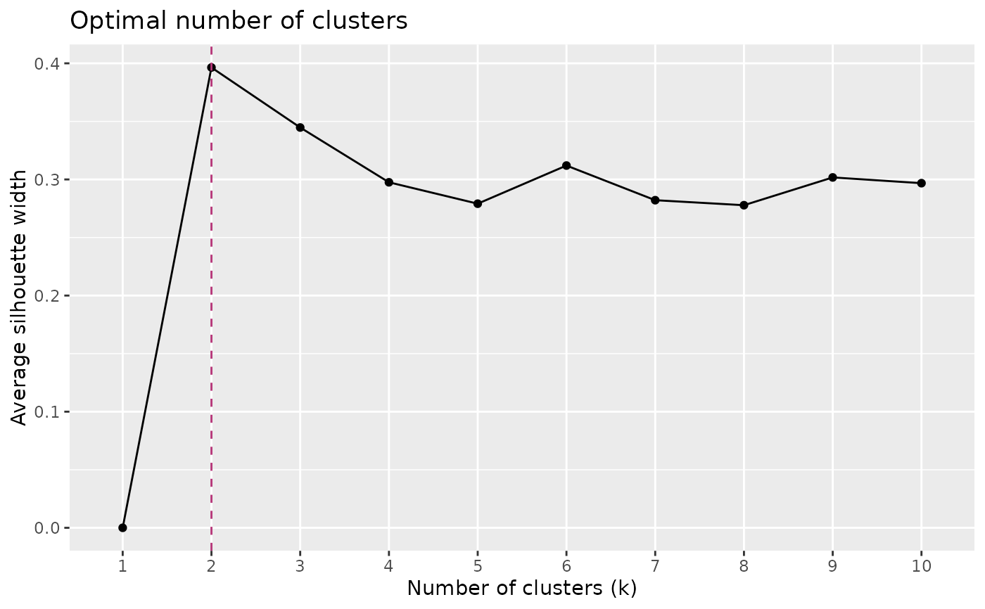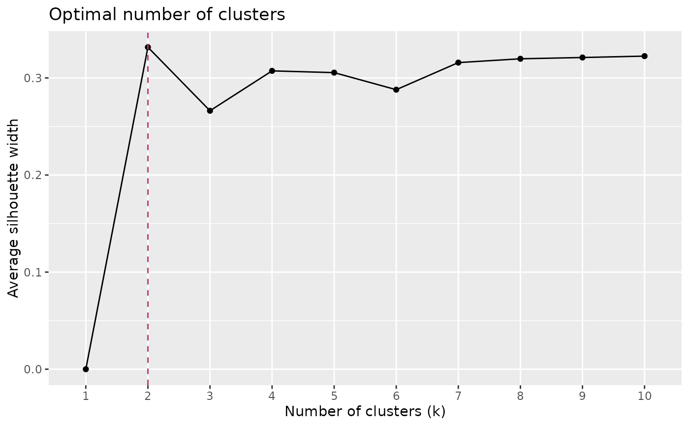 Determines the optimal number of clusters in a dissimilarity matrix using average silhouette width.