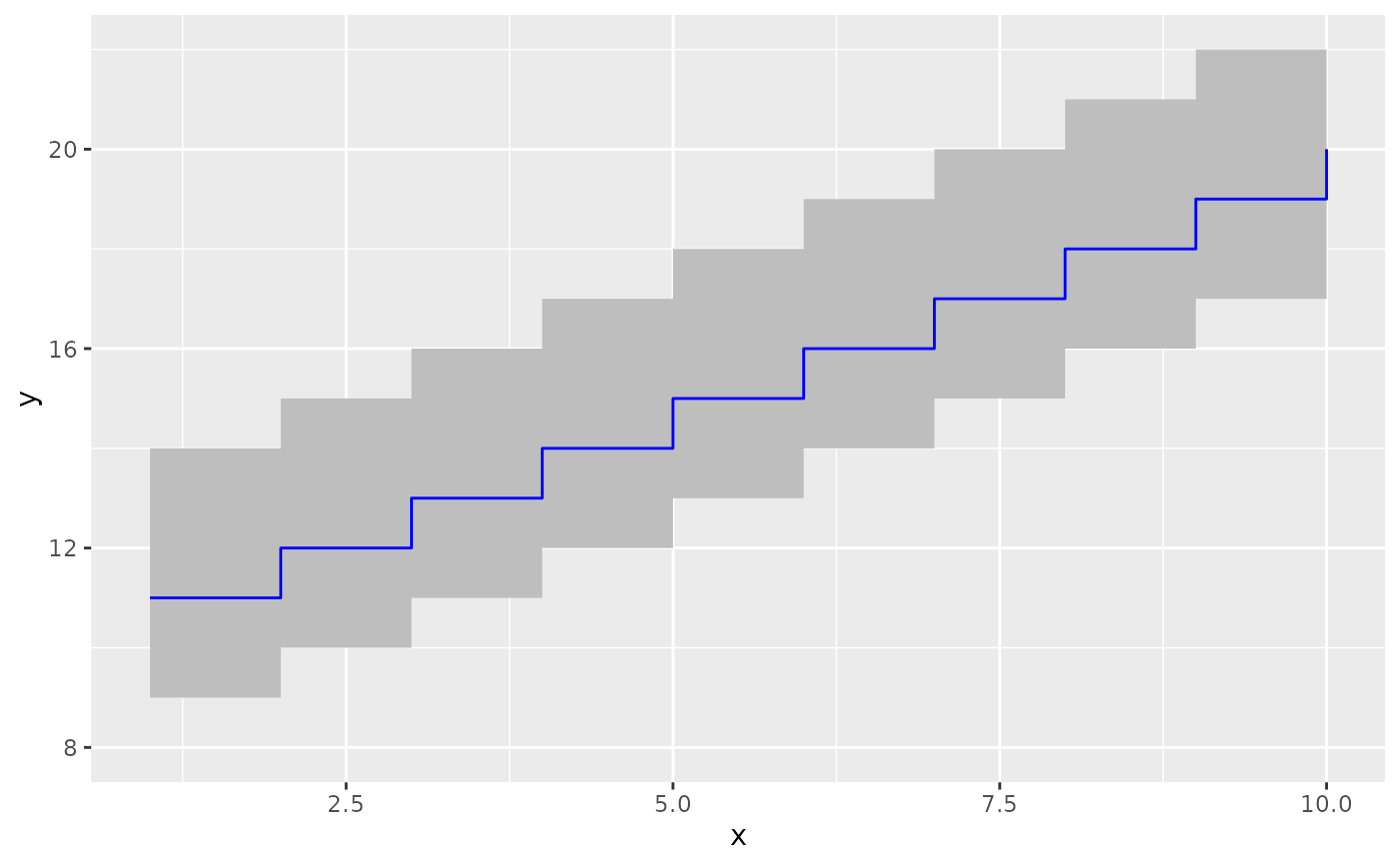 df <- data.frame(x = x, y = x + 10, ymin = x + 7, ymax = x + 12)